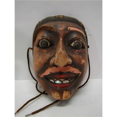 WOODEN FACE MASK. Painted wooden tribal face mask shows wear and areas of loss to wood.