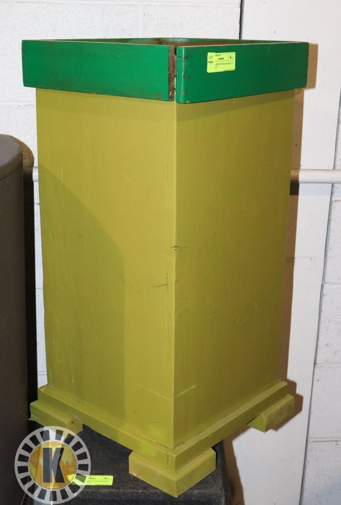 WOODEN GREEN STORAGE BOX 13" BY 13" BY 27''