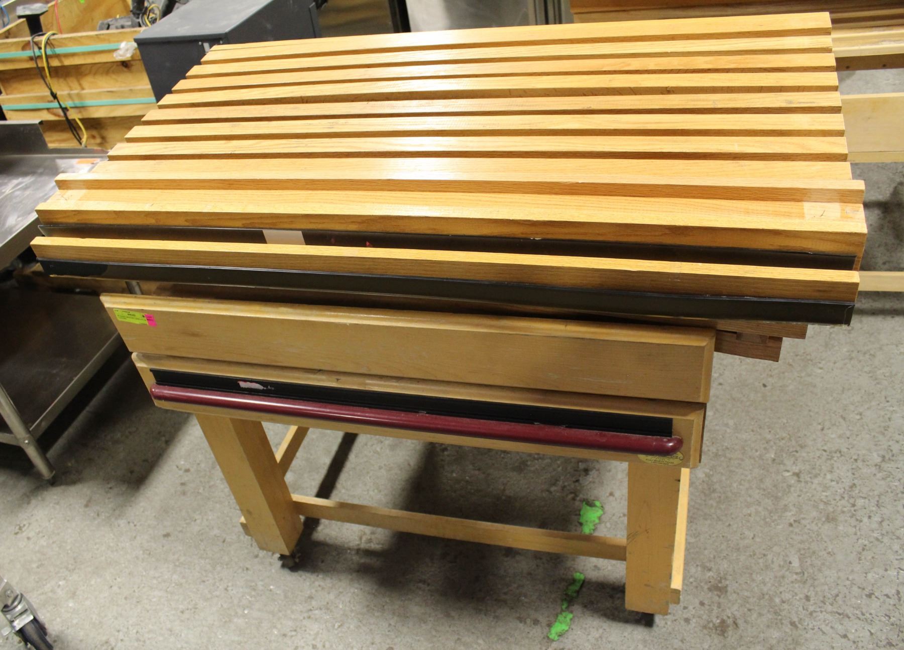 WOODEN GROCERY DISPLAY ON CASTORS. 36X37X32