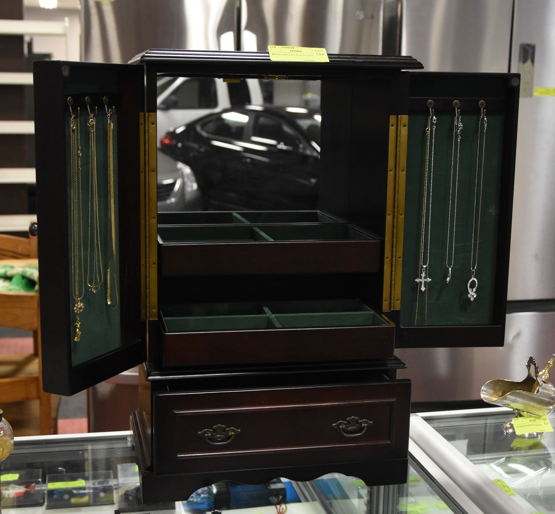 WOODEN JEWELLRY BOX & VARIOUS CONTENTS
