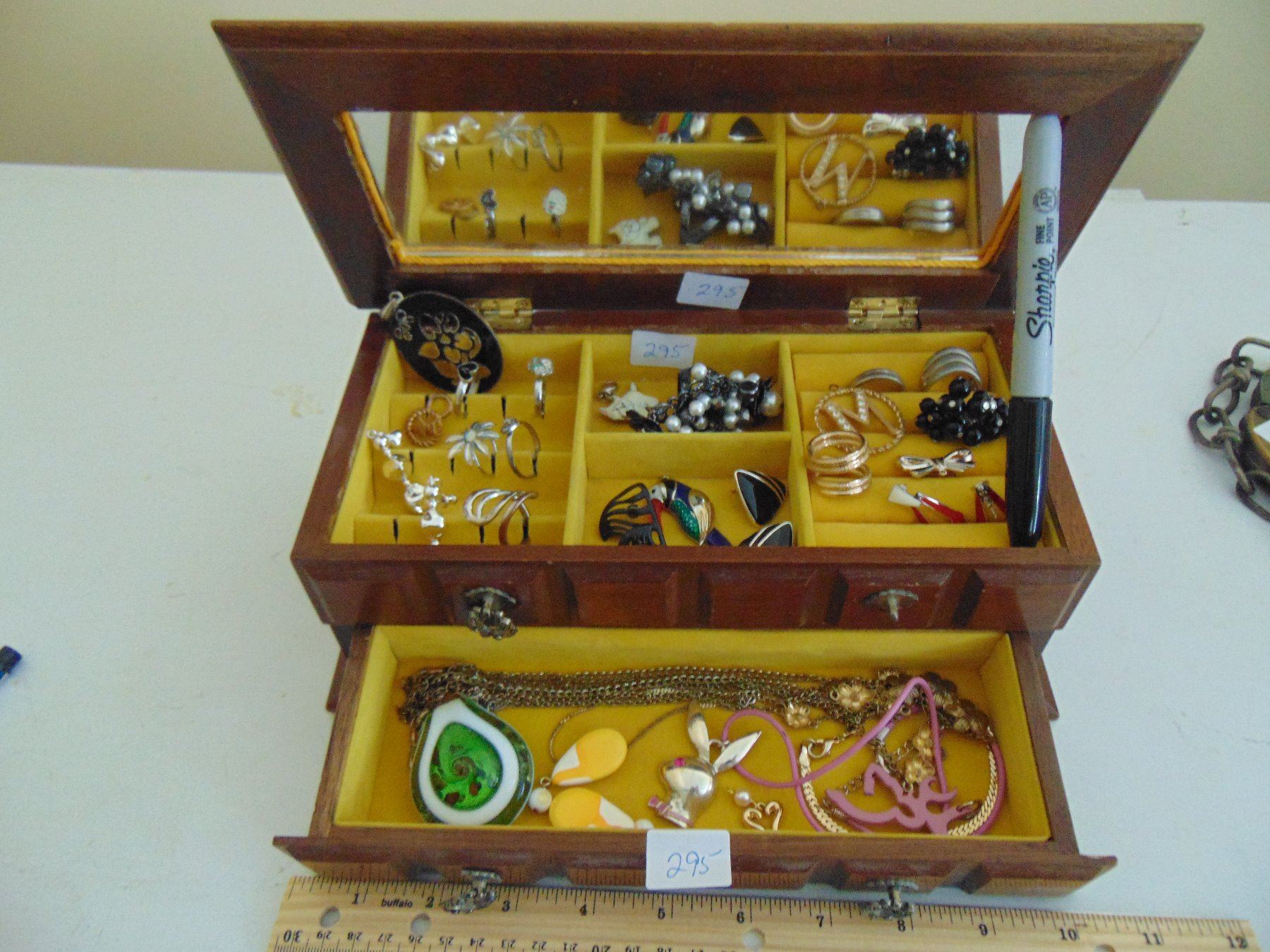 WOODEN JEWELRY BOX *MUSICAL* & JEWELRY