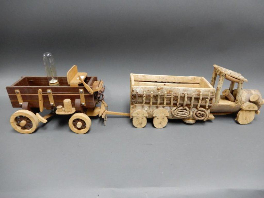 WOODEN LIGHT UP WAGON & HAND MADE TRUCK 19" X 7 1/2" X 10 WAGON - MODEL KIT - 19" X 6" X 8" TRUCK LOCATION: LOWER LEFT