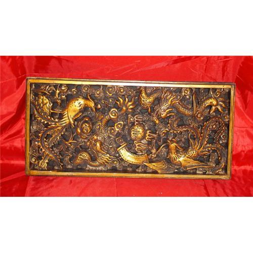 <tr><td>Title:WOODEN PLAQUE WITH PHOENIX AND DRAGON MOTIFS</td></tr>