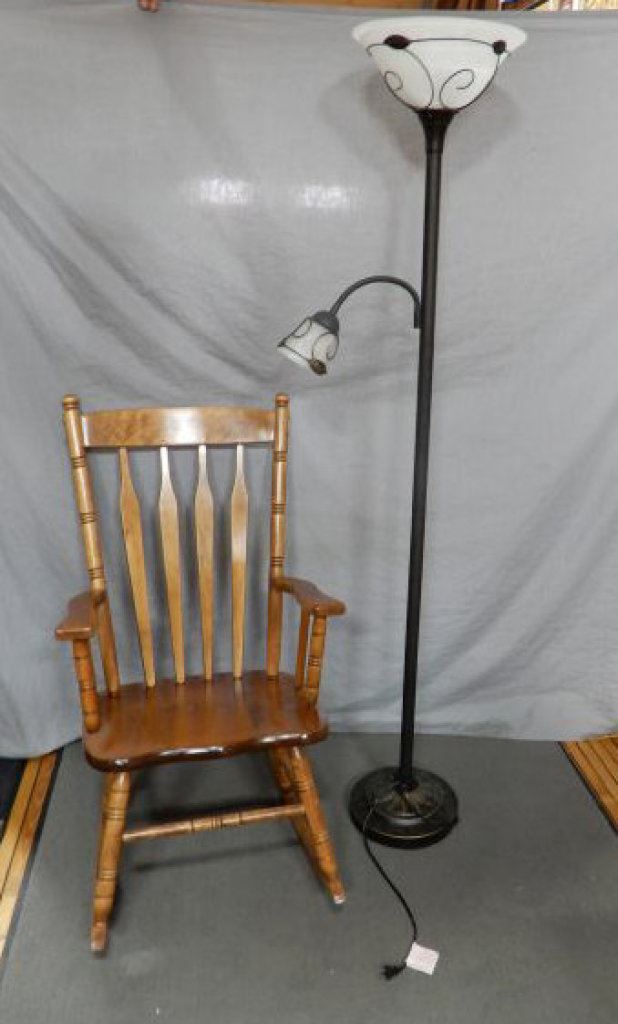 WOODEN ROCKING CHAIR & READING LAMP LOCATION: UPPER LEFT