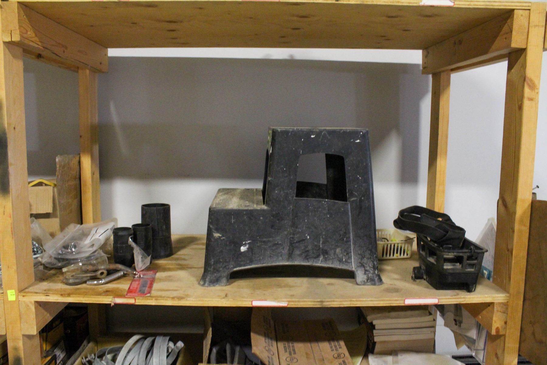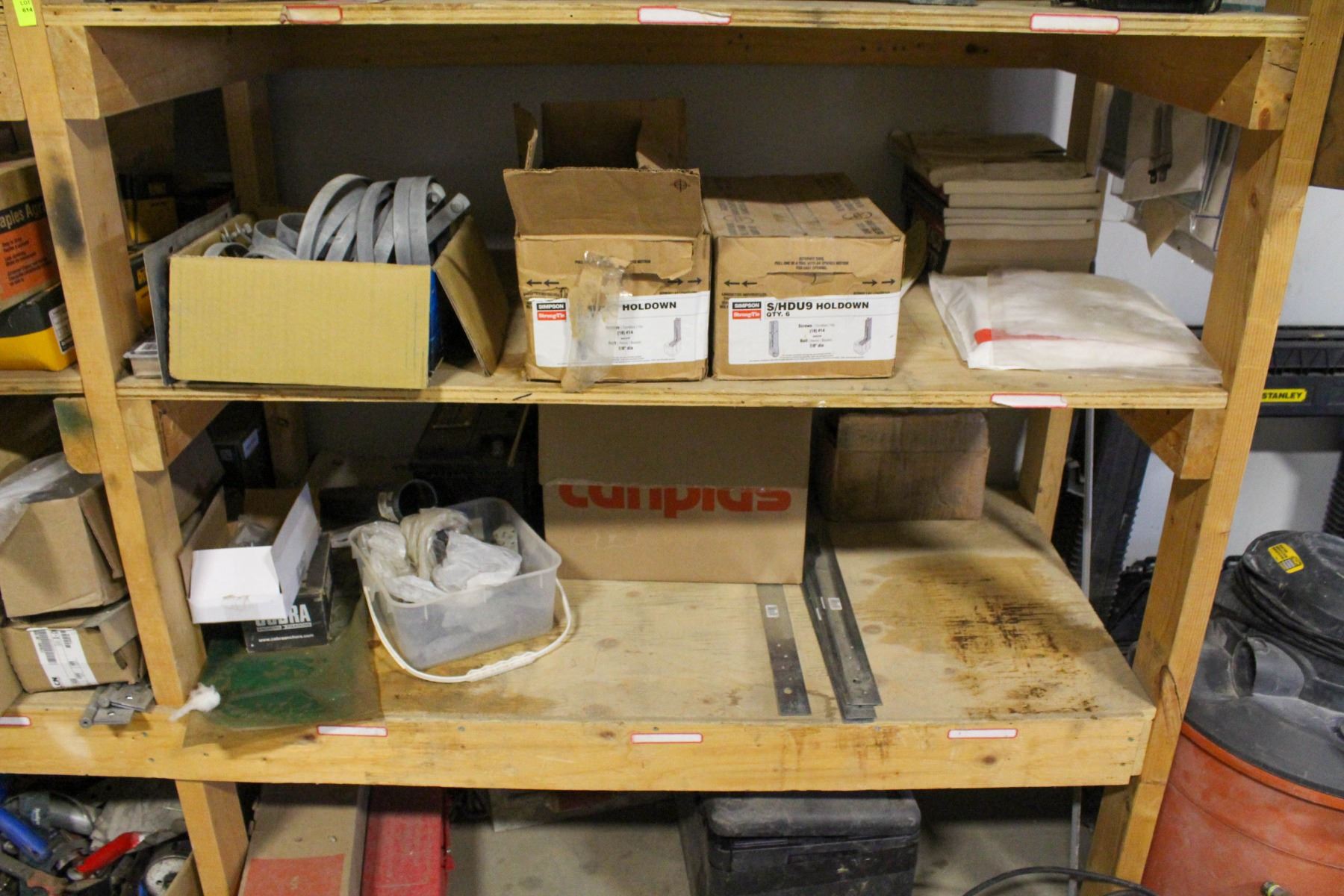 WOODEN STORAGE RACK W/ CONTENTS INCL: HARDWARE,