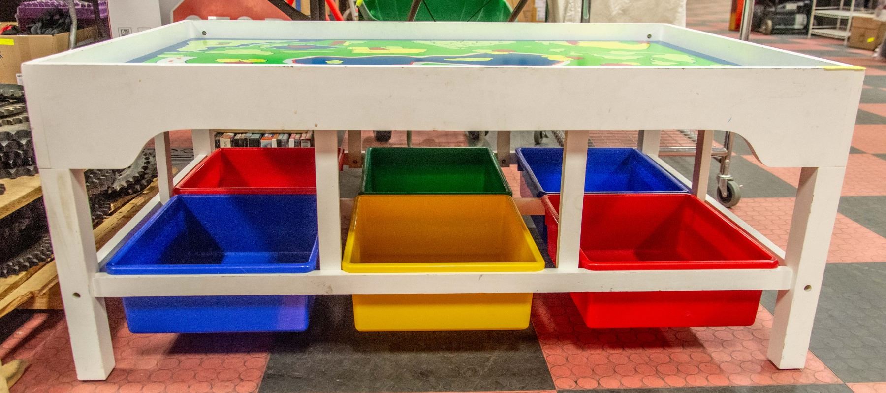 WOODEN TRAIN TABLE - WITH STORAGE BINS UNDERNEATH