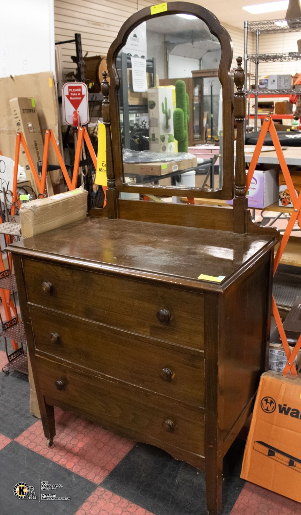 WOODEN VANITY WITH MIRROR + 3 DRAWERS