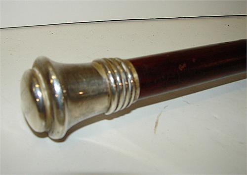 WOODEN WALKING STICK WITH STERLING TOP MOUNT. Top mount is marked Sterling and engraved at top “W.W. Wagner/Philadelphia”. Missing tip. 33.25” L