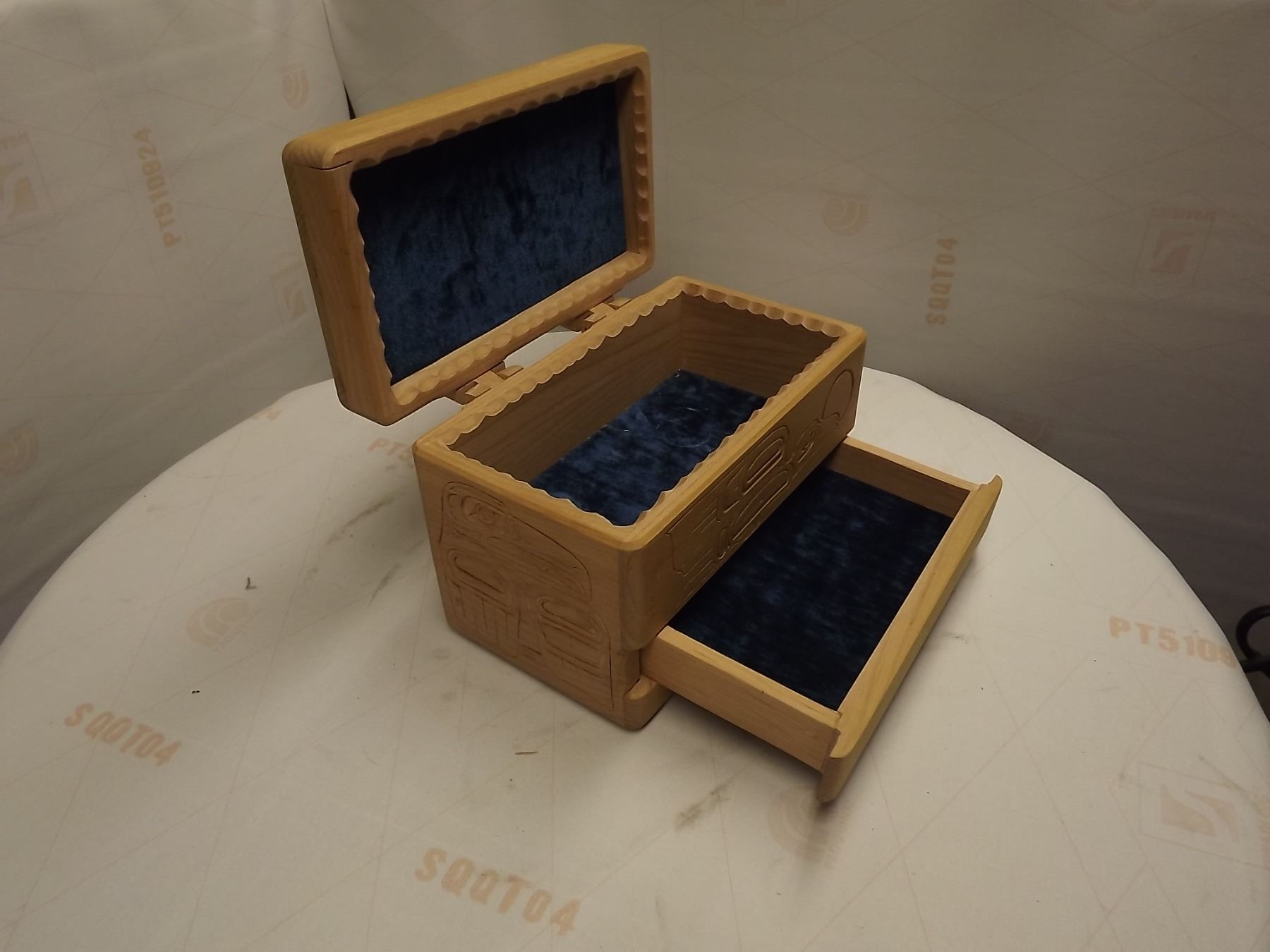 WOODEN WEST COAST ART CARVED VELVET LINED BOX