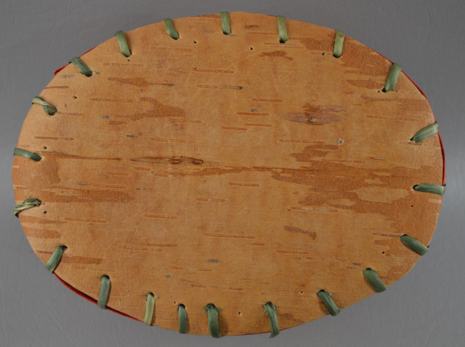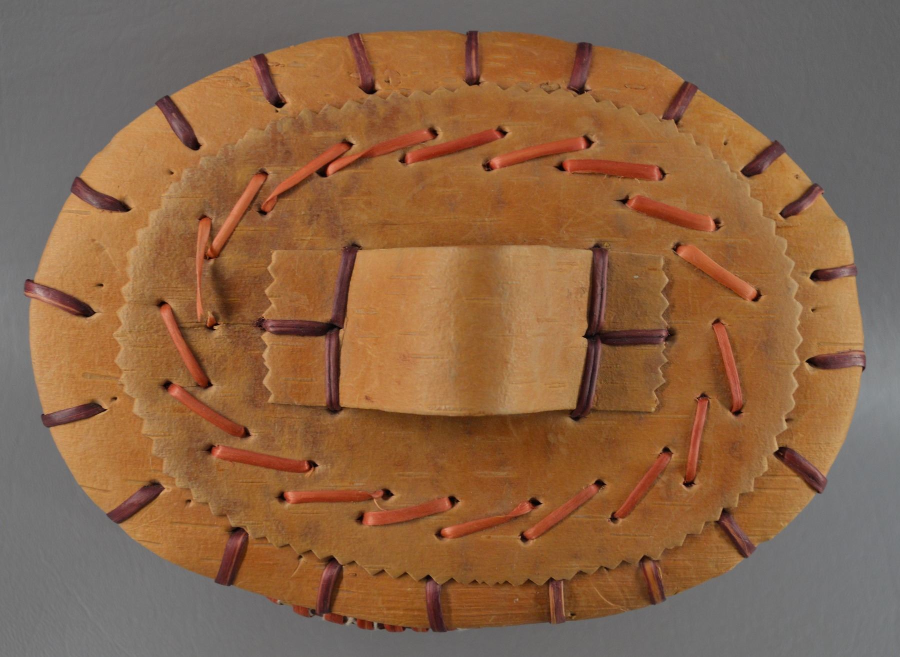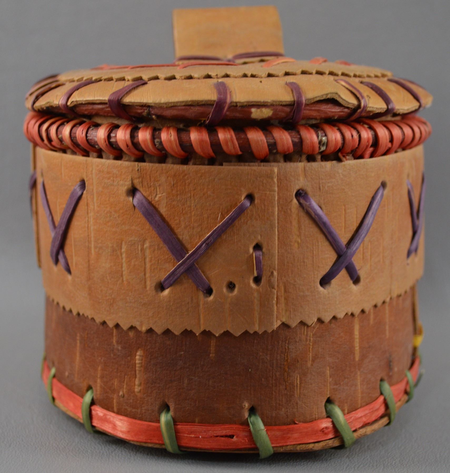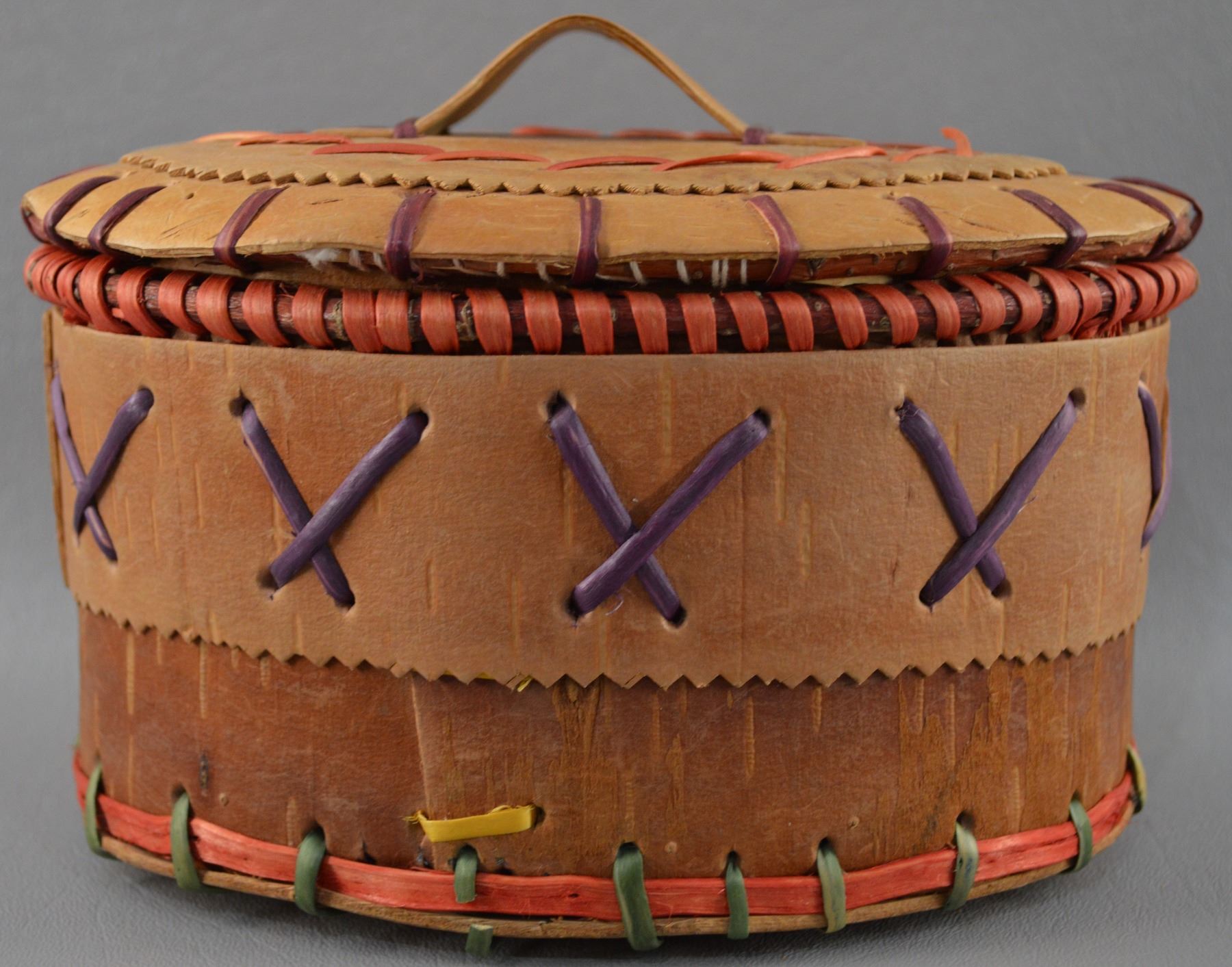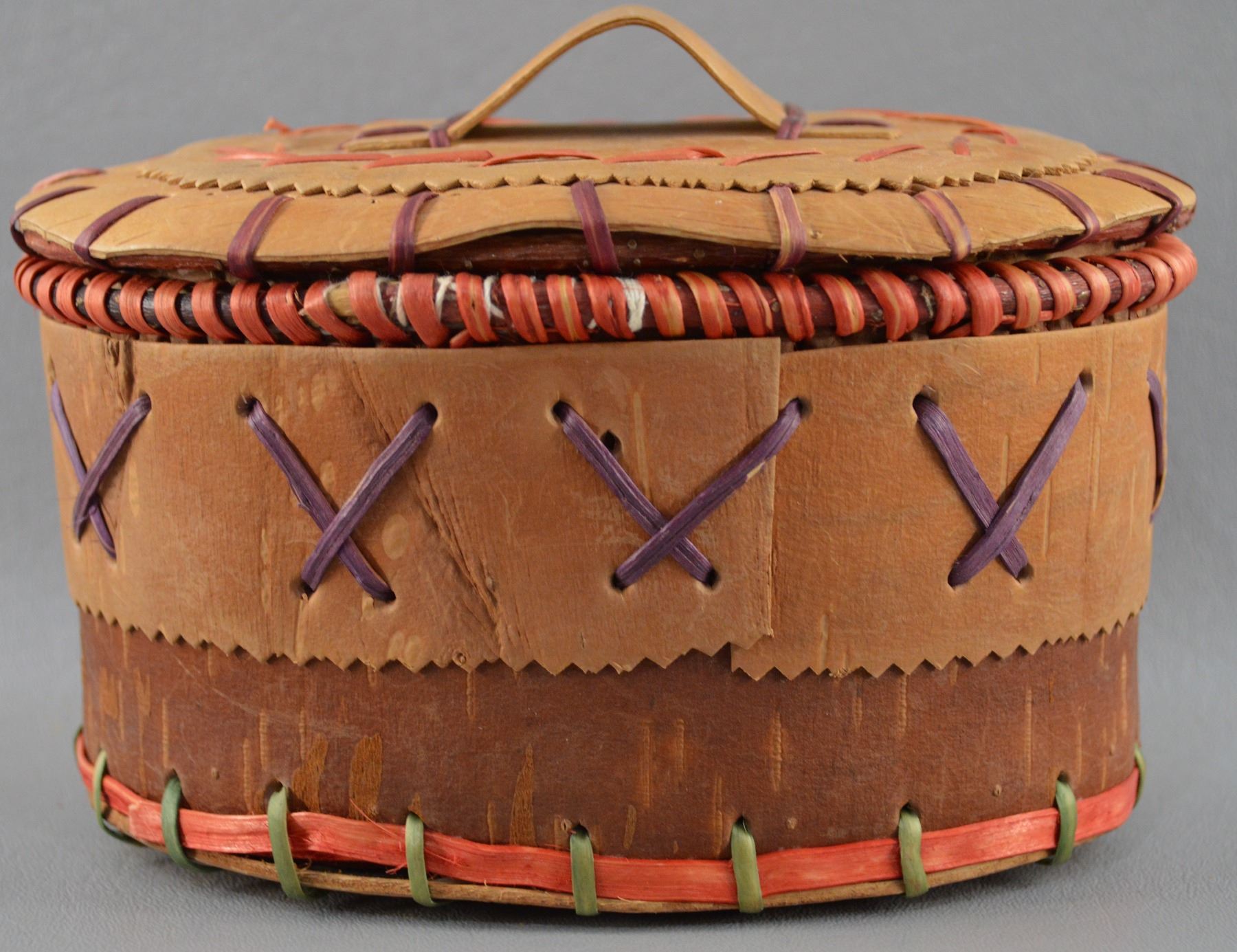 1950's. Hand made wooden box with lid. Has geometric woven design.
