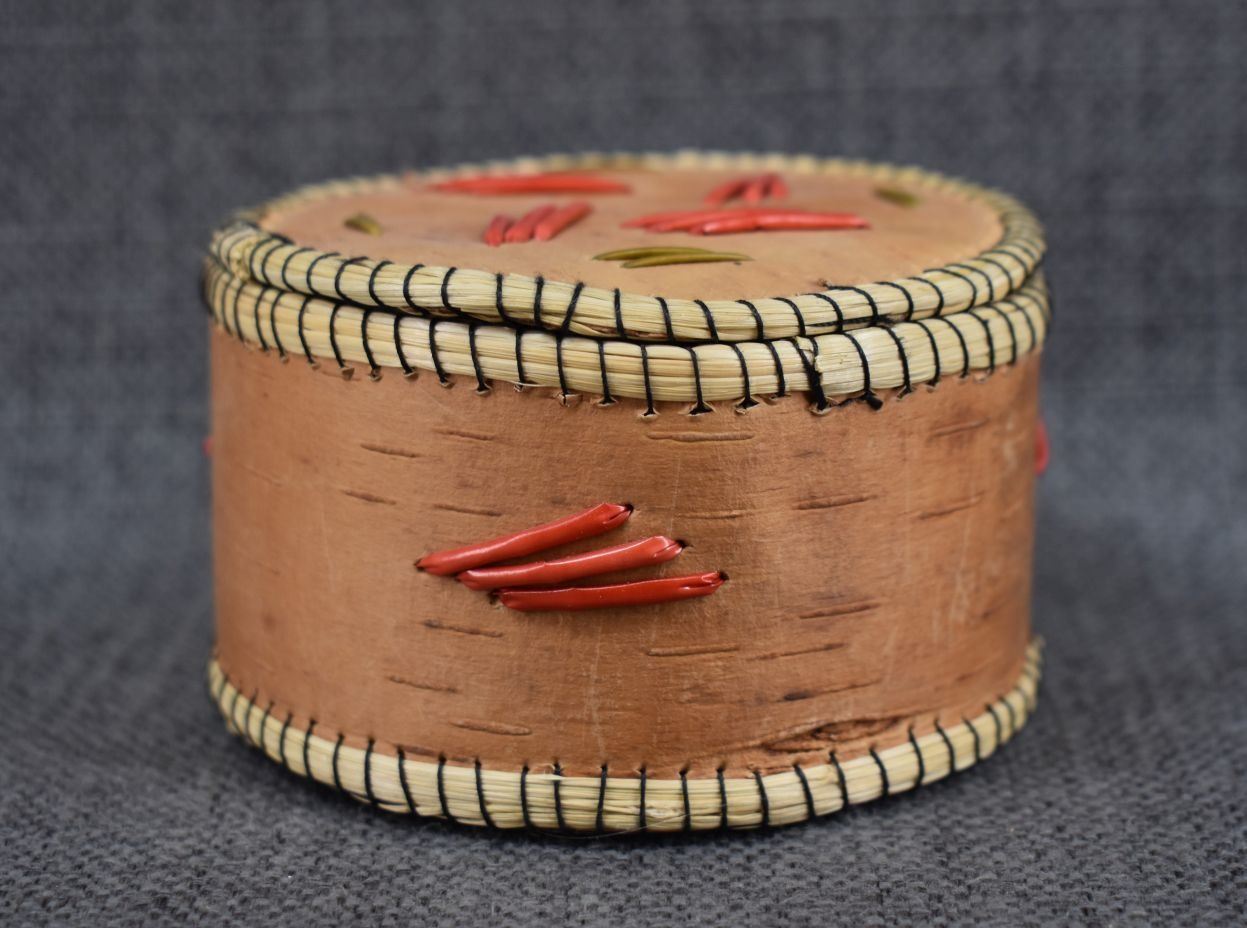 1970-80's Woodlands Indian hand made from birchbark with quilled design 2.5" x 4"