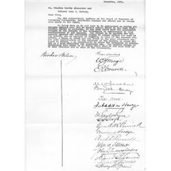 A rare D.S. signed by two presidents, WOODROW WILSON (1856-1924) and GROVER CLEVELAND (1837-1908), 1p. legal folio, Princeton University, December, 1905. Wilson, soon to be President, and ex-President Cleveland have boldly signed their names at the head of a petition demanding the resignation of two members of Princeton's Board of Trustees, Col. John J. McCook and Charles B. Alexander. The test reads, in part: "…We, the undersigned, members of the Board…earnestly request and advise you to resign your seats on the Board…we do not wish to be misunderstood as making any charges against you; but we cannot remain blind to the fact that, whether justly or unjustly, …the University is embarrassed by your participation in its control…[your resignations are] an opportunity to serve the interests of Princeton in a most patriotic and unselfish way…". The document is also signed by 16 additional board members as well. Folds, else near fine.