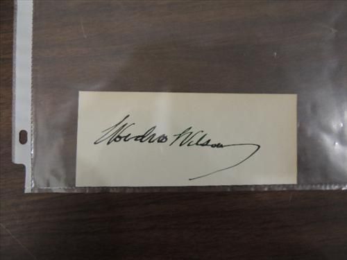 WOODROW WILSON CUT SIGNATURE AUTOGRAPH NO COA. AS SHOWN. VIEW PICTURE FOR DETAIL. PLEASE BE ADVISED, AND INFORMED REGARDING SIGNATURES OR AUTOGRAPHS THAT WE SELL AT AUCTION: WE ARE NOT AUTHENTICATORS, AND WE DO NOT AUTHENTICATE, OR VALIDATE ANY AUTOGRAPHS OR SIGNATURES THAT WE OFFER AT AUCTION. SOME AUTOGRAPHS OR SIGNATURES MAY COME WITH AN AUTHENTICATION FROM ANY ONE OF LITERALLY HUNDREDS OF AUTHENTICATORS ACROSS THE COUNTRY, AND AROUND THE WORLD. WE DO NOT ENDORSE ANY AUTHENTICATOR, NOR DO WE GUARANTEE THAT ANY AUTOGRAPH OR SIGNATURE IS AUTHENTIC, OR THAT IT WILL PASS AUTHENTICATION BY ANY AUTHENTICATOR. ALL AUTOGRAPHS OR SIGNATURES ARE SOLD