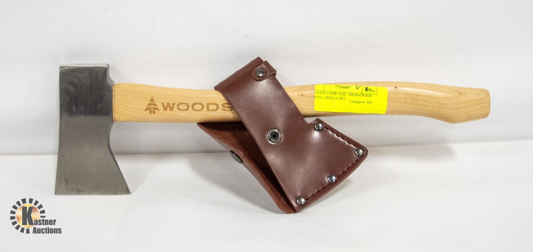 HATCHET AXE WITH WOODEN HANDLE AND LEATHER BELT SHEATH