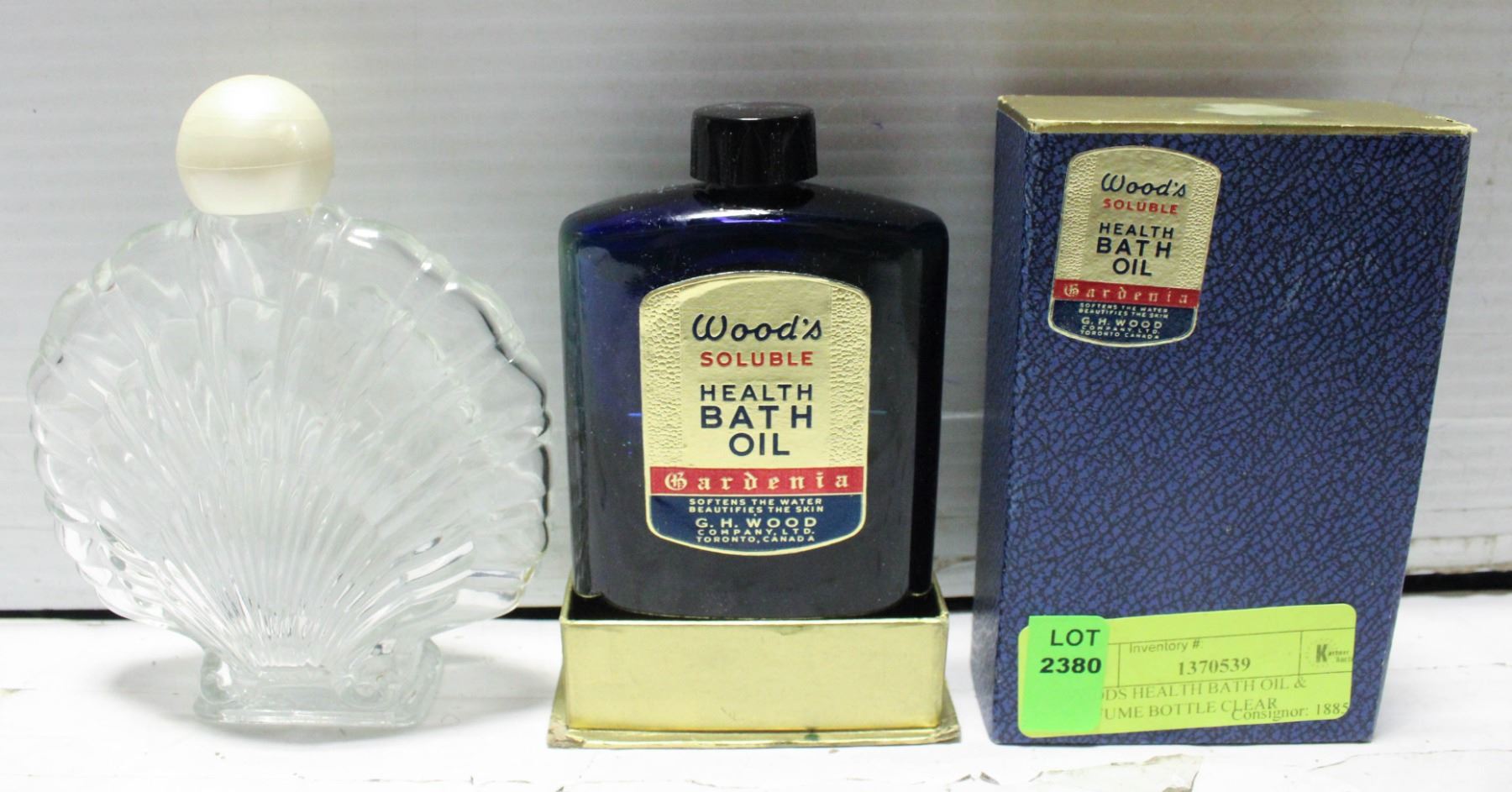 WOODS HEALTH BATH OIL & PERFUME BOTTLE CLEAR