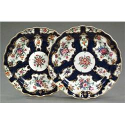 WORCESTER - A pair of Worcester blue scale plates, the gilt bordered reserves painted with Europ...