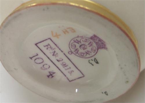WORCESTER CHINA LOT. (1889). Consists of one small hand painted floral & gilt decorated ewer (5” H) and one gilt decorated ewer (8” H). Marked on bottom.