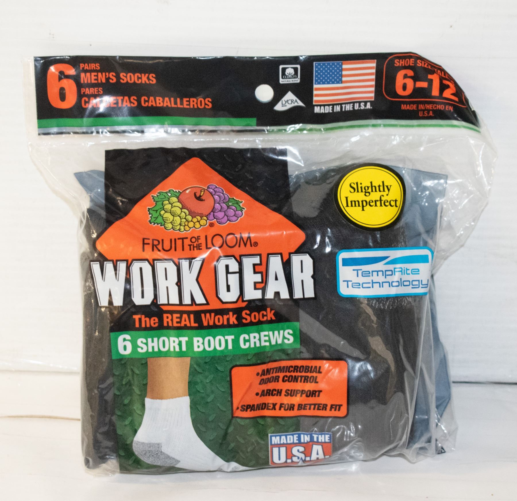 WORK BOOT SOCKS,SIZE 6-12,6 PACK,FRUIT OF THE