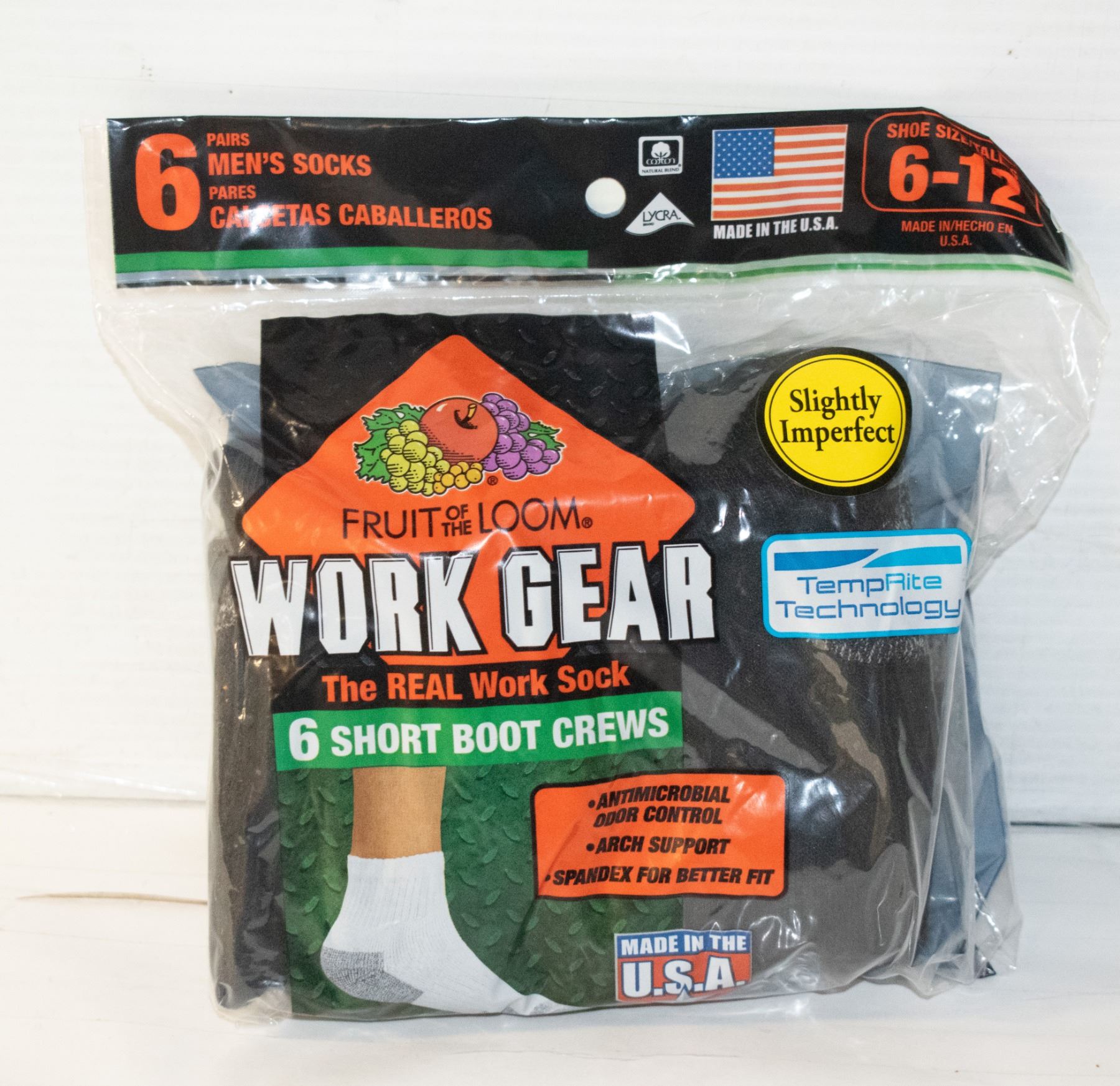 WORK BOOT SOCKS,SIZE 6-12,6 PACK,FRUIT OF THE