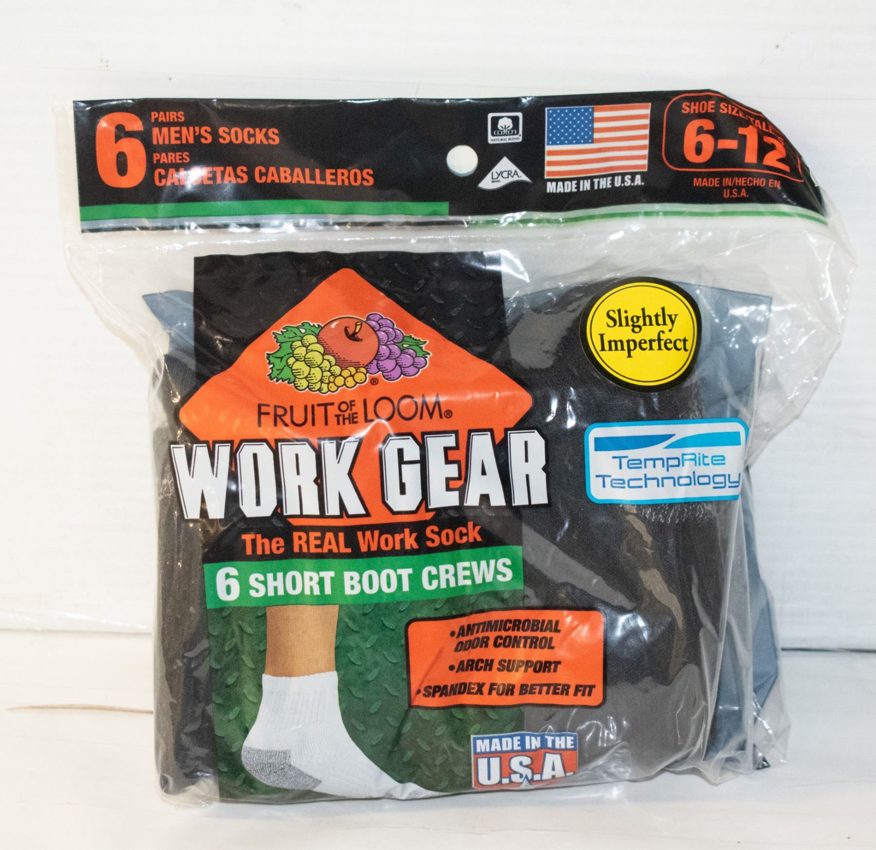 WORK BOOT SOCKS,SIZE 6-12,6 PACK,FRUIT OF THE