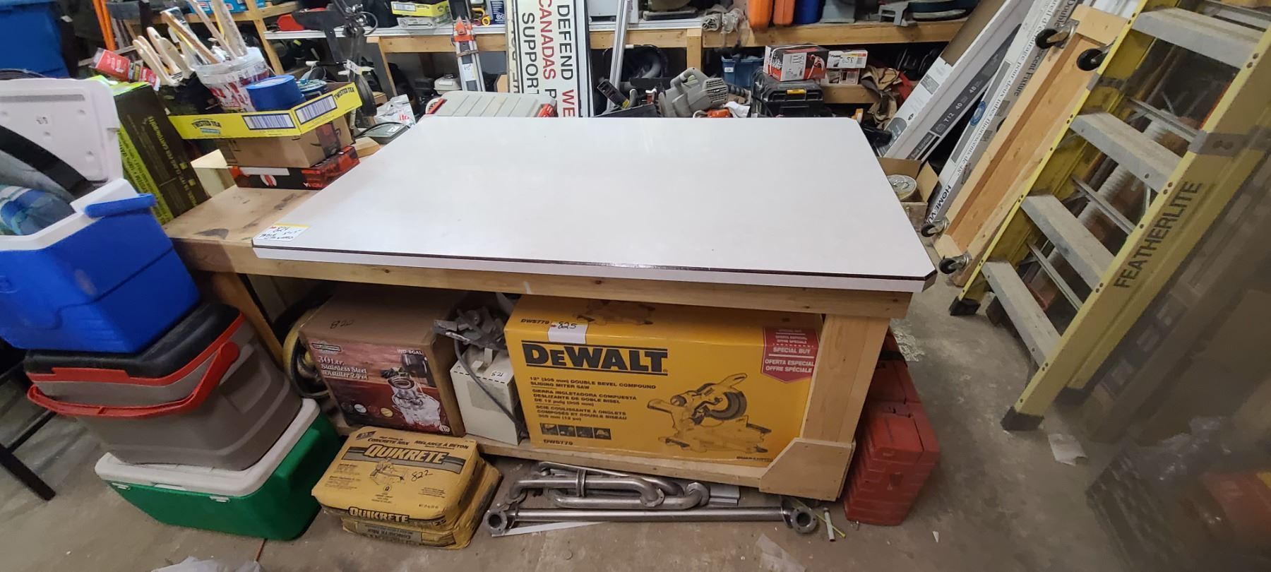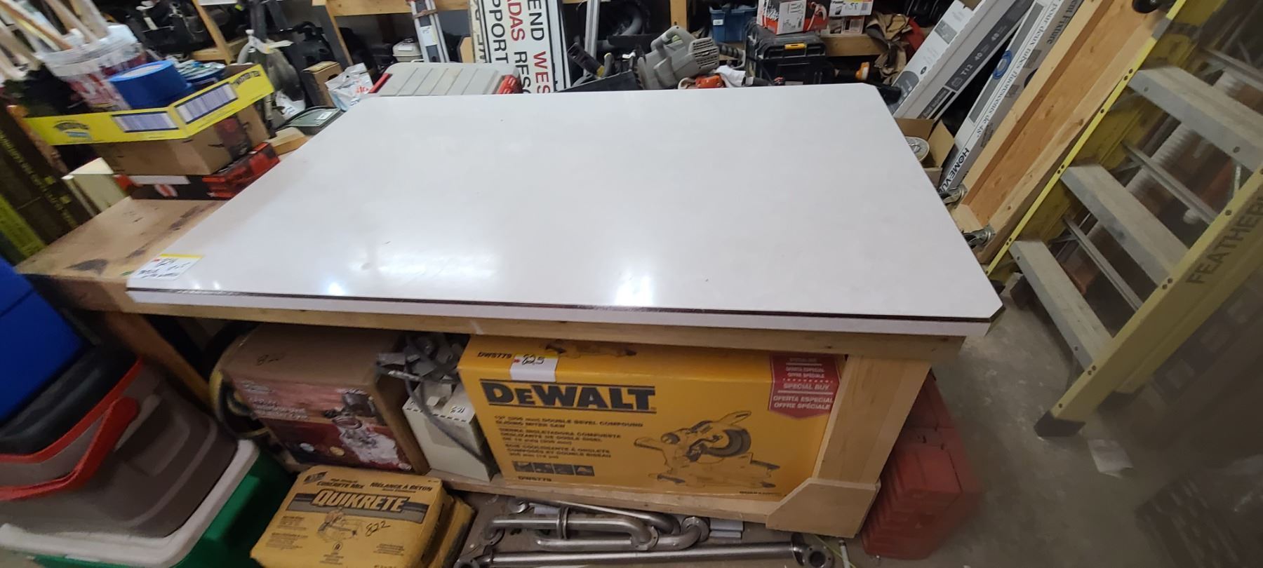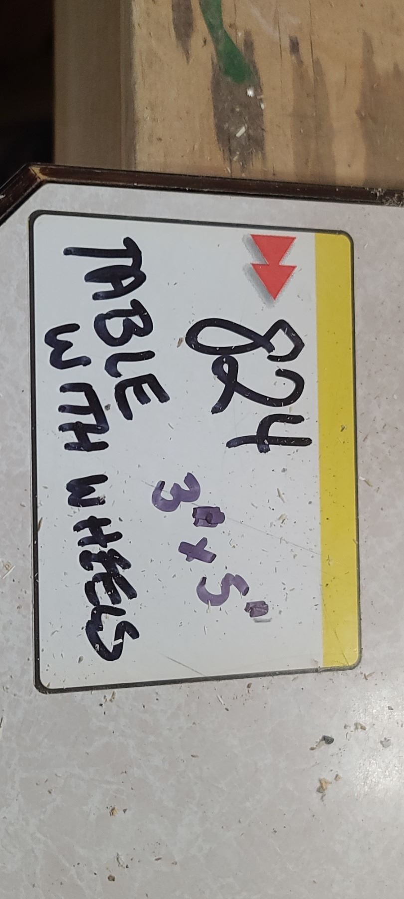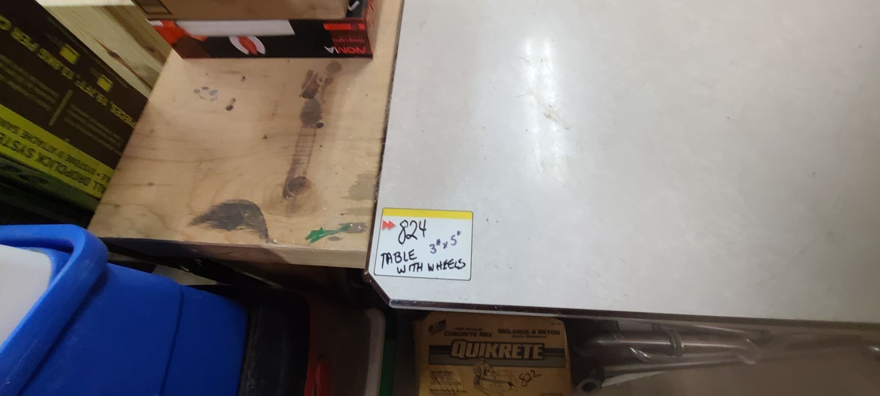 WORK TABLE ON WHEEL 3' X 5' - REMOVE ON LAST DAY AS GARAGE DOOR IS BLOCKED