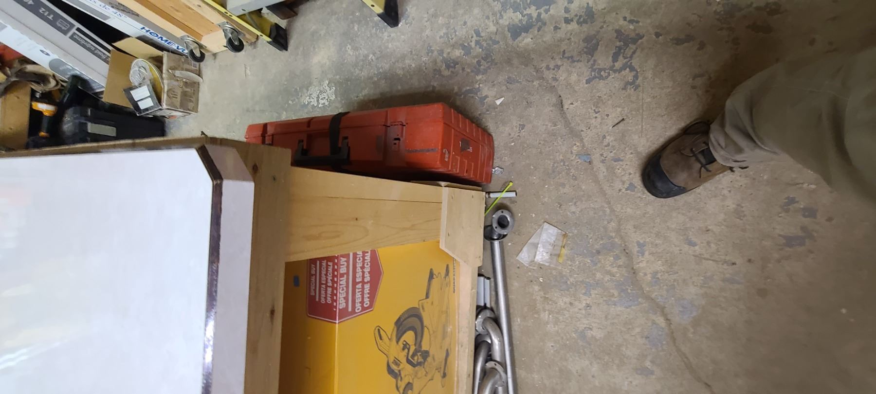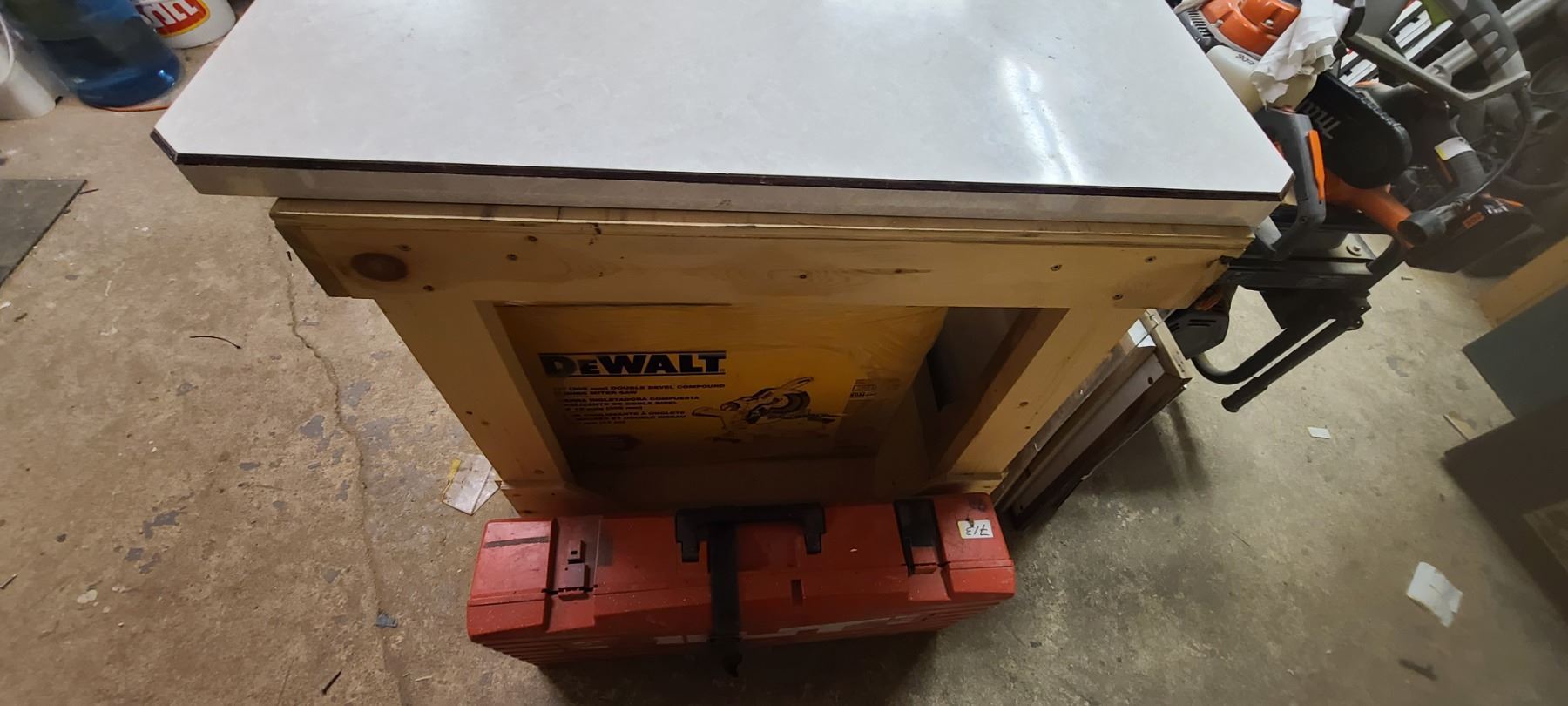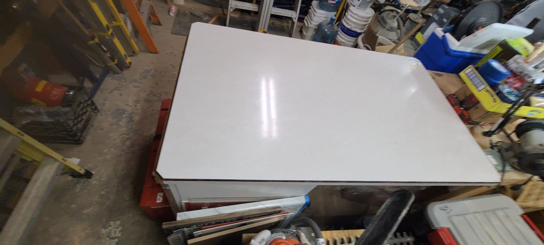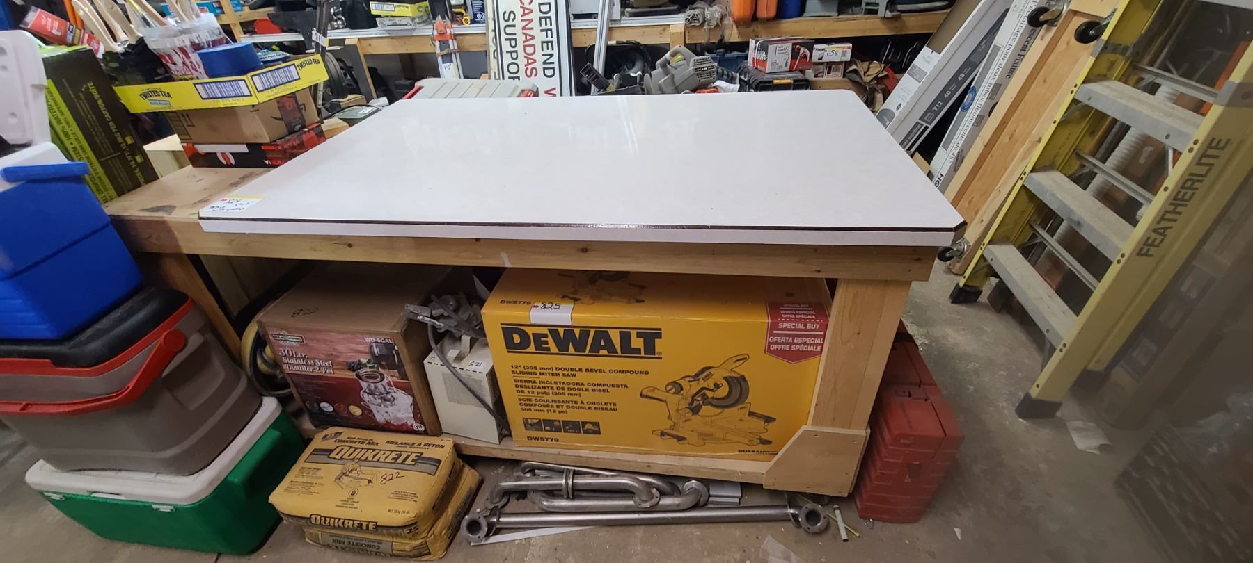 WORK TABLE ON WHEEL 3' X 5' - REMOVE ON LAST DAY AS GARAGE DOOR IS BLOCKED