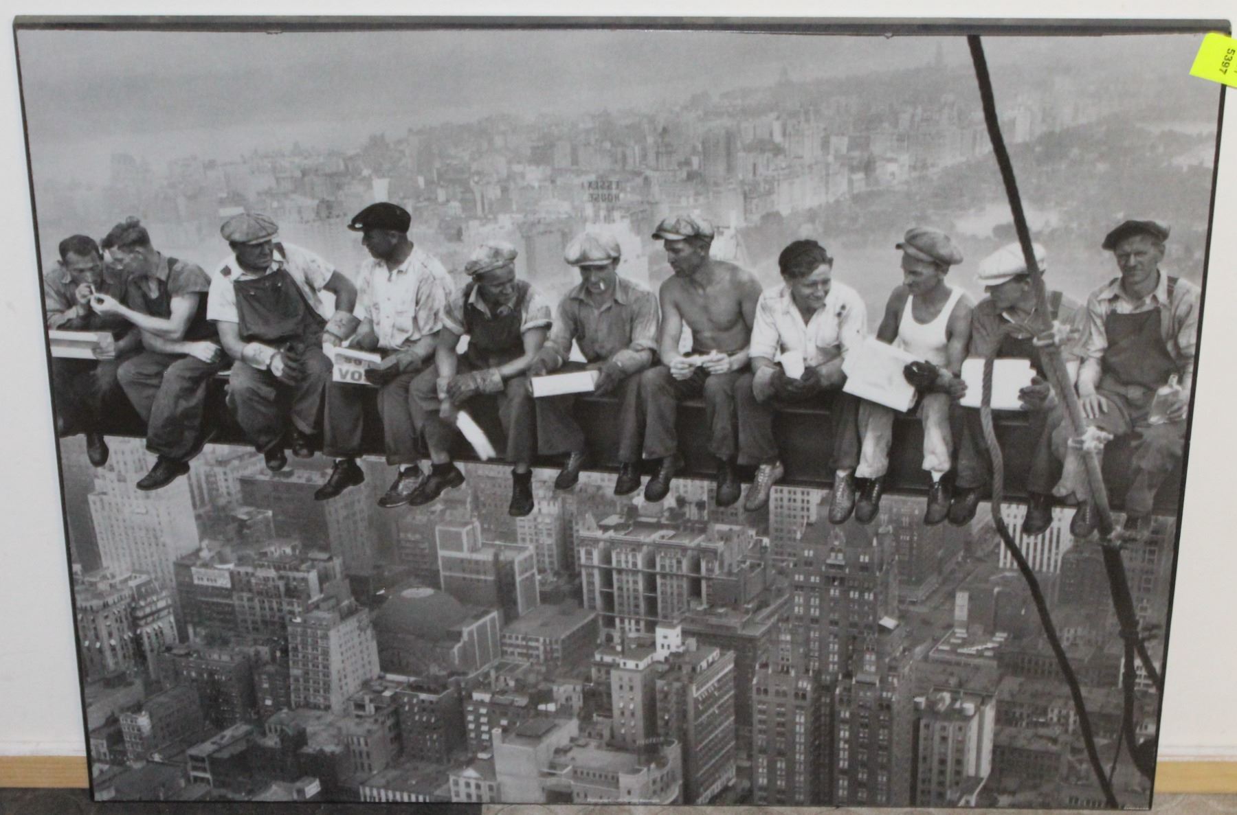 WORKERS EATING LUNCH ON STEEL BEAM ON SKYRISE