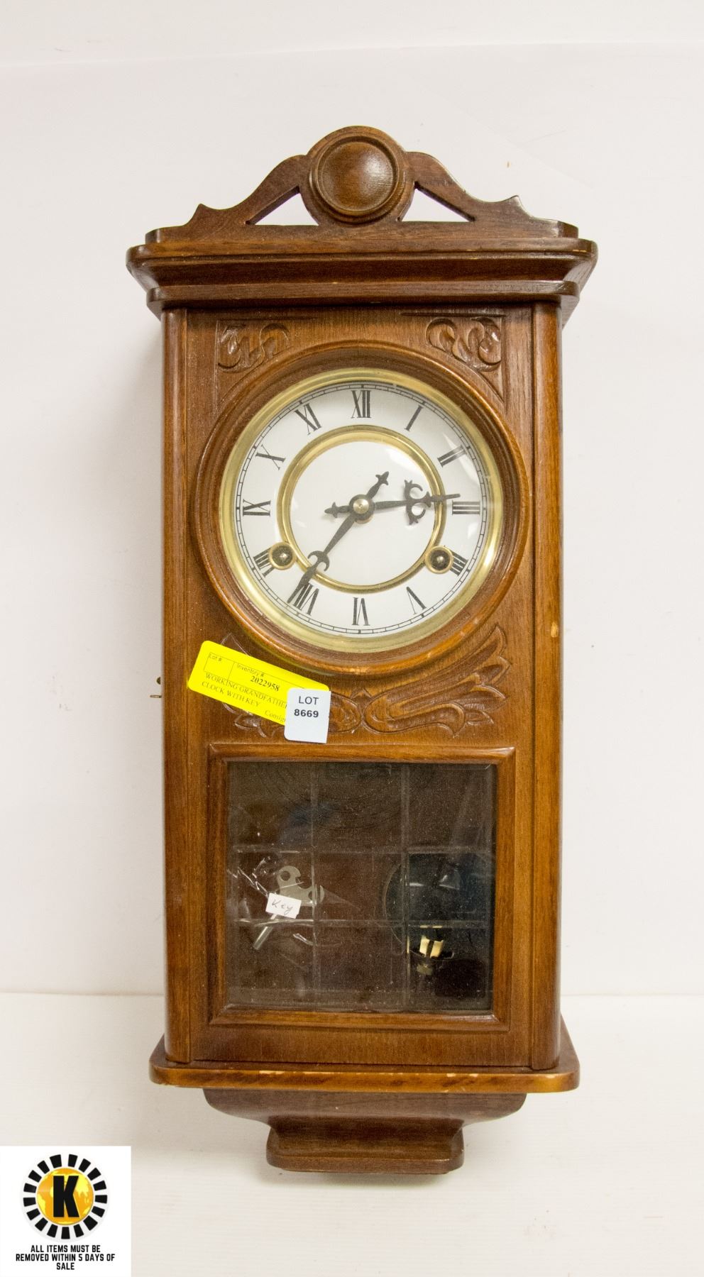 WORKING GRANDFATHER WALL CLOCK WITH KEY