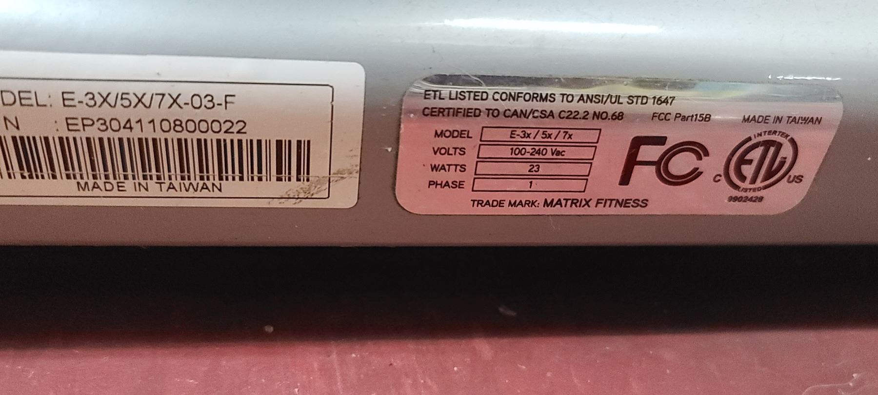 WORKING MATRIX ELIPTICAL MODEL E-3X/5X/7X-30-F - VOLTS:100-240V PHASE ONE