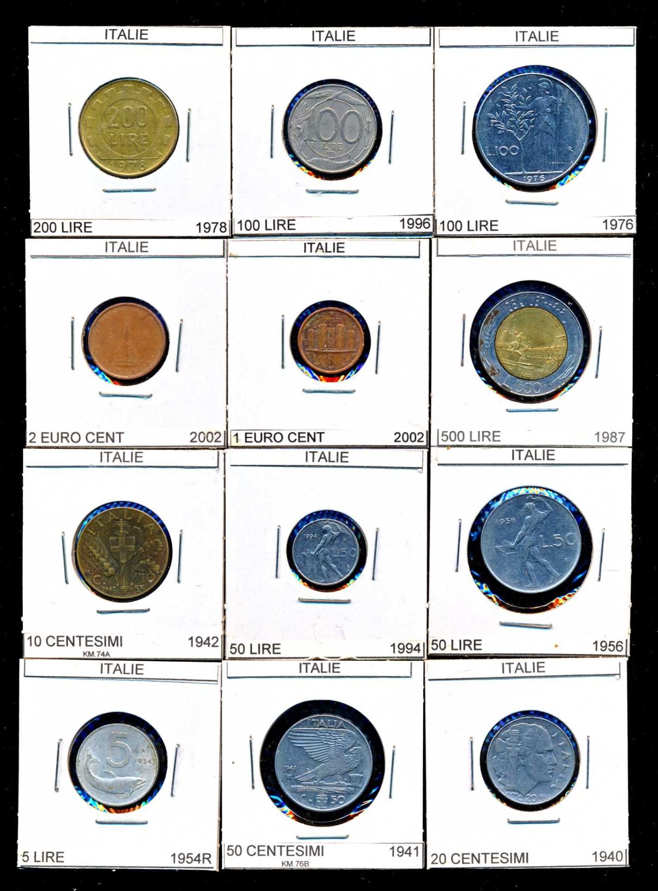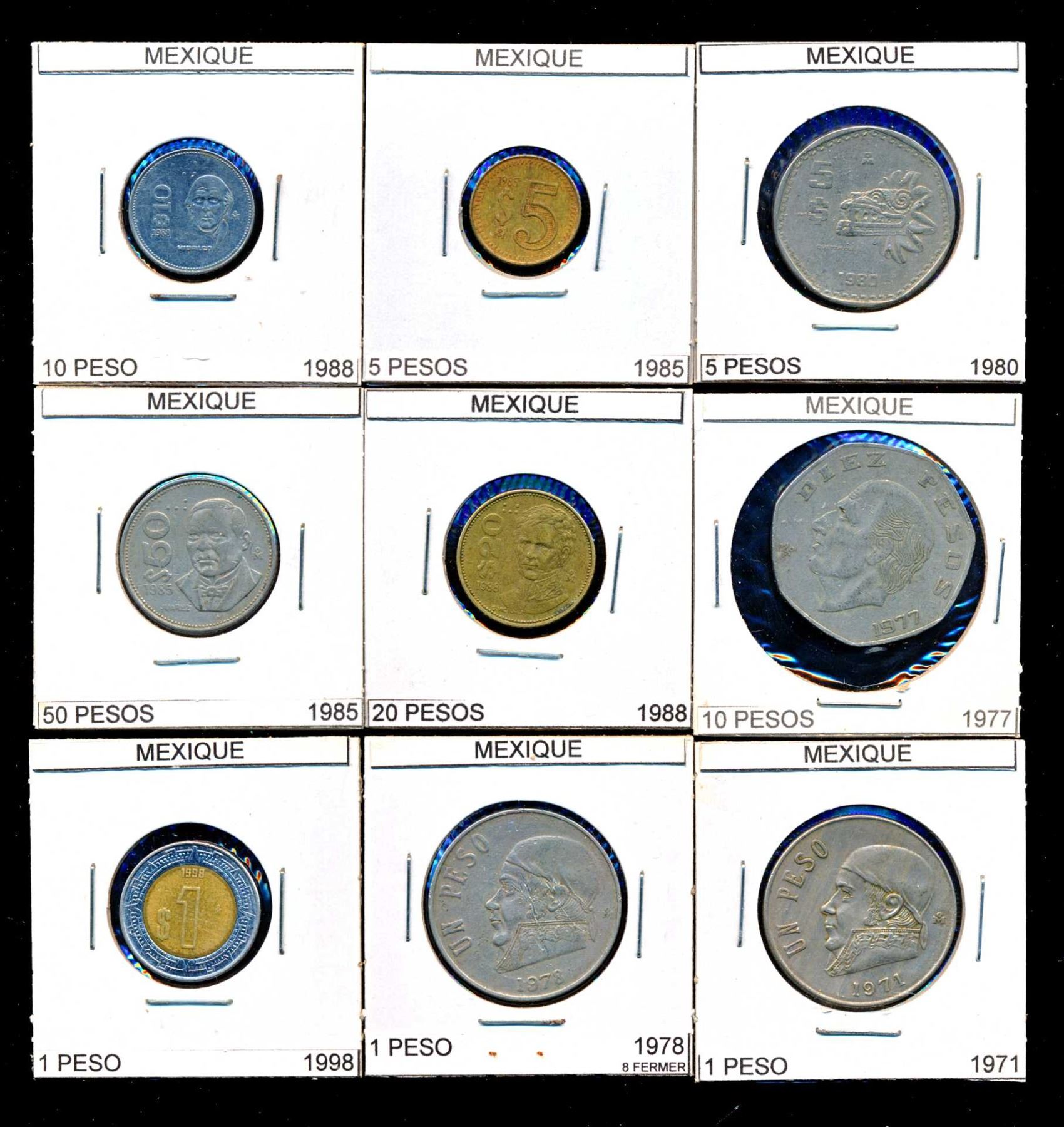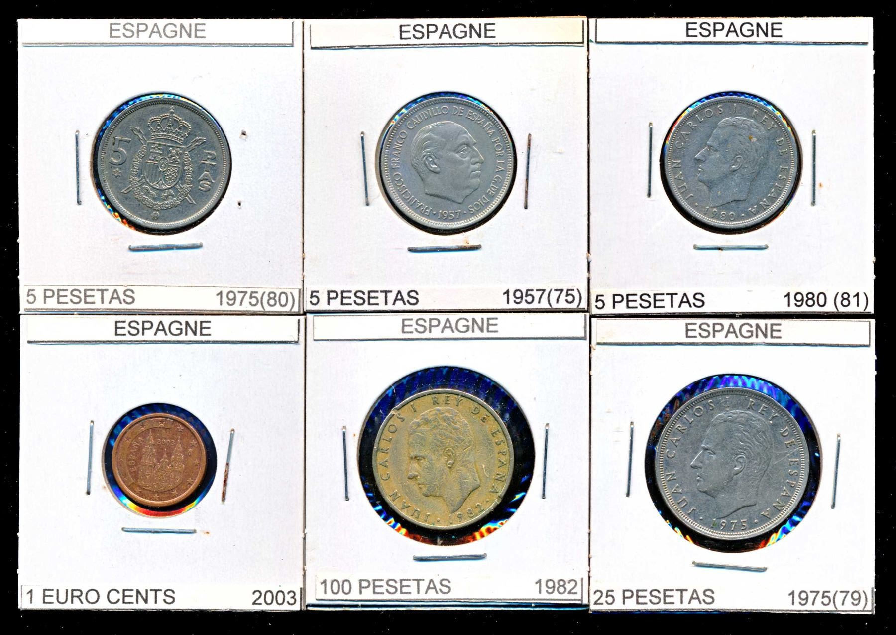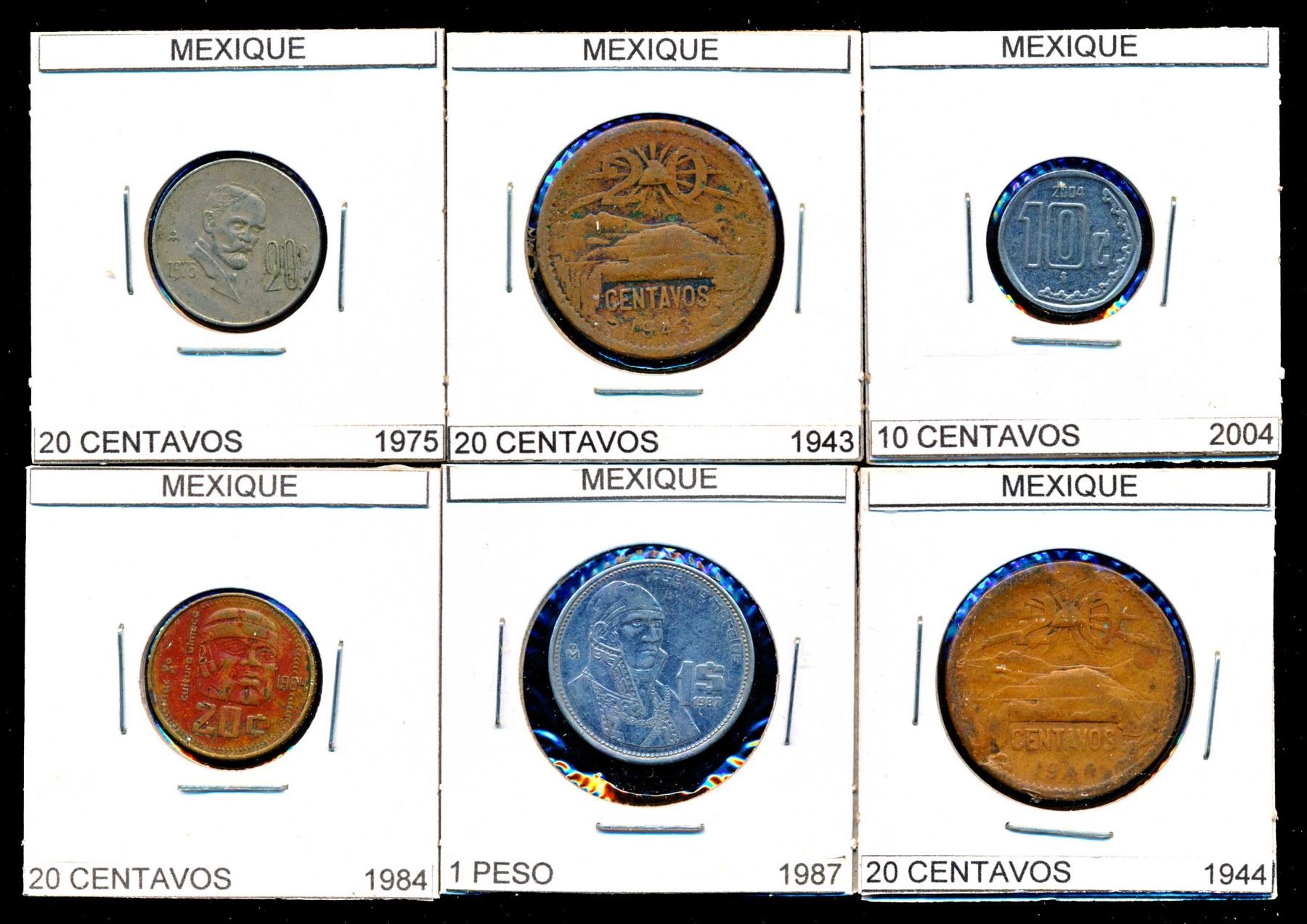 Coins from Spain 10 Centimes to 5 Euro Cents 546 pcs, Italy 10 Centisimi to 5 New Euro Cents 641 pcs.and Mexico 1 Centavo to 1000 Pecos 1415 pcs., all in 2 x 2's with country, denomination and date, many of the dates are multiples, no culls, all saleable.