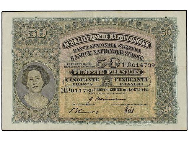 WORLD BANK NOTES - 50 Francos. 1 Octubre 1942. SUIZA. (Algo sucio). WPM-34m. MBC+.