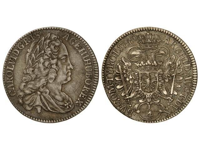 WORLD COINS: AUSTRIA - 1/4 Thaler. 1740. CARLOS VI, Pretendiente a la corona de España. AR. Pátina. KM-1666. MBC+.