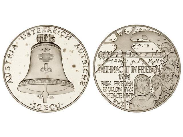 WORLD COINS: AUSTRIA - 10 Ecu. 1994. AR. Con certificado original y en expositor. Tirada: 9.000 piezas. (Manchitas en anverso). KM-XM25. PROOF.