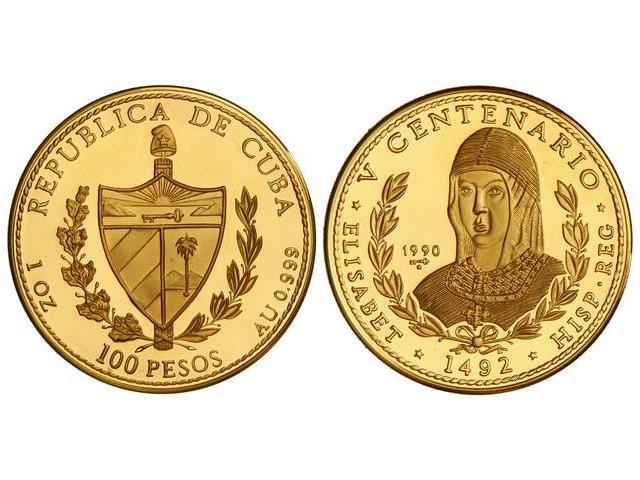 WORLD COINS: CUBA - 100 Pesos. 1990. AU. Isabel ´La Católica´. Tirada: 250 piezas. KM-304. PROOF.