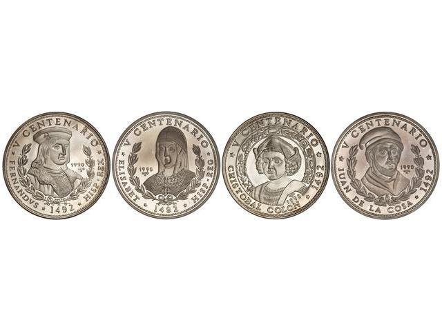 WORLD COINS: CUBA - Lote 4 monedas 50 Pesos. 1990. AR. Colón, Fernando ´El Católico´, Isabel ´La Católica´ y Juan de la Cosa. Tirada: 2.000 piezas c/u. Con certificados. KM-294/7. PROOF.