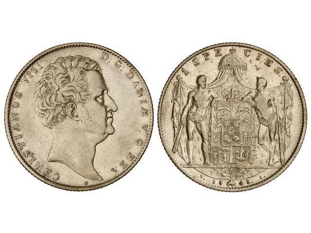 WORLD COINS: DENMARK - 1 Speciedaler. 1845-VS. CHRISTIAN VIII. AR. KM-720.3. MBC+/MBC.
