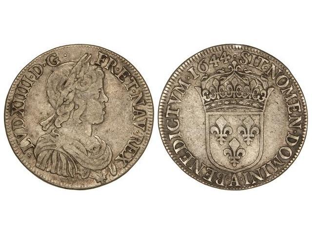 WORLD COINS: FRANCE - 1/2 Ecu. 1644-A. LUIS XIV. PARÍS. AR. KM-163.1. MBC-/MBC.
