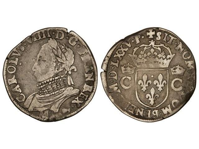 WORLD COINS: FRANCE - 1 Testón. 1575-M. CARLOS IX. TOULOUSE. AR. MBC-.