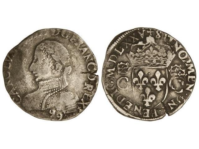 WORLD COINS: FRANCE - 1 Testón. 1575-g. CARLOS IX. RENNES. AR. (Doble acuñación en anverso). MBC-.
