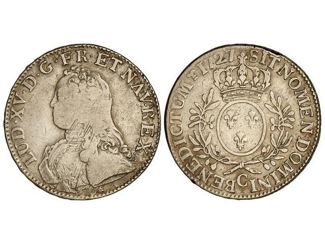 WORLD COINS: FRANCE - Ecu. 1727-C. LUIS XV. CAEN. AR. (Rayas de ajuste en anverso). KM-486.5. BC+/MBC-.