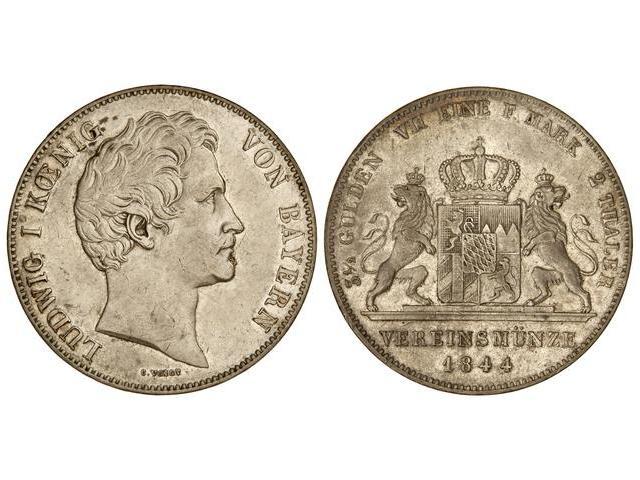 WORLD COINS: GERMAN STATES - 2 Thaler. 1844. LUIS I. BAVIERA. AR. KM-814. MBC+/MBC.