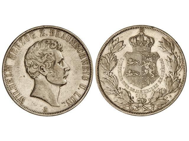 WORLD COINS: GERMAN STATES - 2 Thaler. 1856-B. GUILLERMO. BRUNSWICK-WOLFENBUTTEL. AR. 25 aniversario de Reinado. KM-1149. MBC.