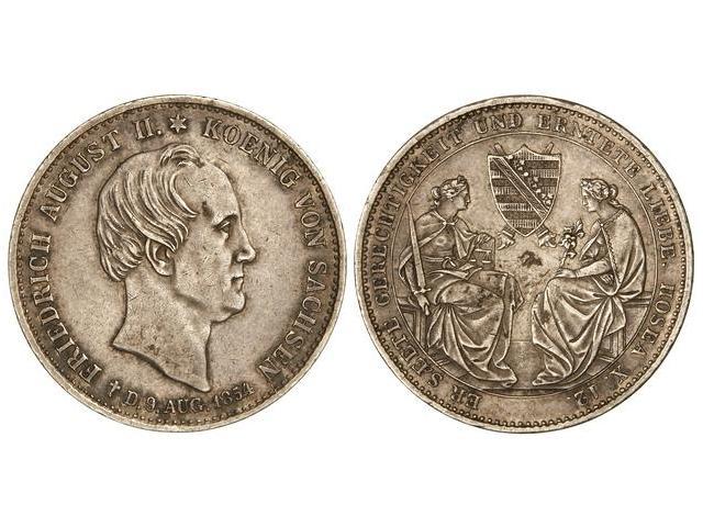 WORLD COINS: GERMAN STATES - Thaler. 1854-F. SAXONY-ALBERTINE. AR. Muerte rey Federico Augusto II. Pátina. (Pequeños golpecitos). KM-1180.1. EBC-.