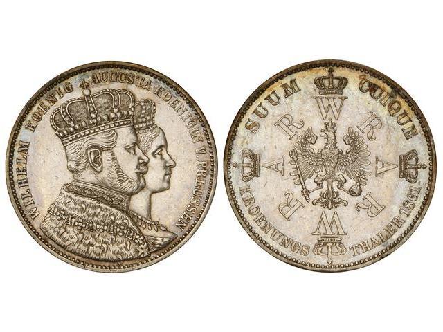 WORLD COINS: GERMAN STATES - Thaler. 1861-A. PRUSIA. AR. Coronación de Guillermo y Augusta. KM-488. EBC.