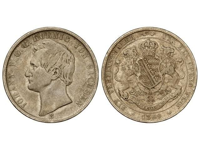 WORLD COINS: GERMAN STATES - Thaler. 1869-B. JUAN. SAXONY-ALBERTINE. AR. KM-1214. MBC-.