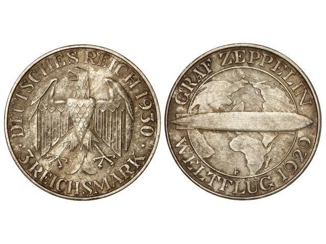 WORLD COINS: GERMANY - 3 Reichsmark. 1930-F. REPÚBLICA DE WEIMAR. AR. Zeppelin. Pátina. KM-67. EBC+.
