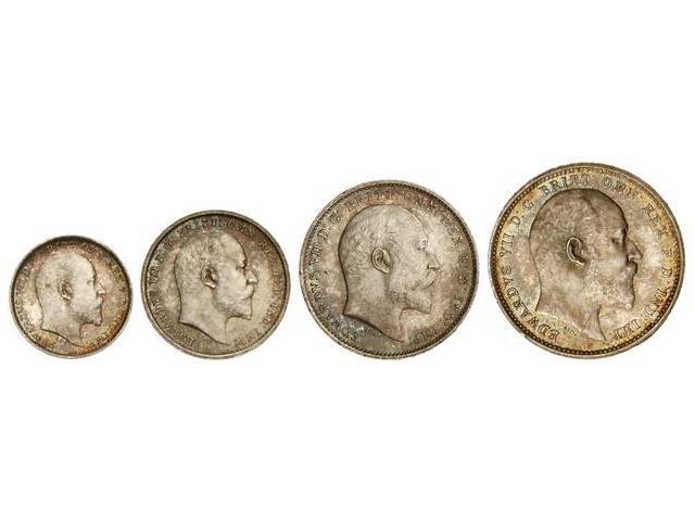 WORLD COINS: GREAT BRITAIN - Serie 4 monedas 1, 2, 3 y 4 Peniques. 1905. EDUARDO VII. AR. Maundy Set. Pátina irisada. KM-MDS162. EBC+ a SC.