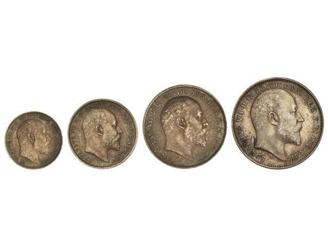 WORLD COINS: GREAT BRITAIN - Serie 4 monedas 1, 2, 3 y 4 Peniques. 1908. EDUARDO VII. AR. Maundy Set. Pátina irisada. KM-MDS165. EBC+ a SC.
