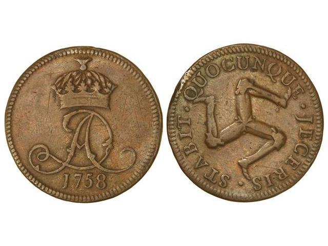 WORLD COINS: ISLE OF MAN - 1 Penique. 1758. AE. KM-7. MBC.