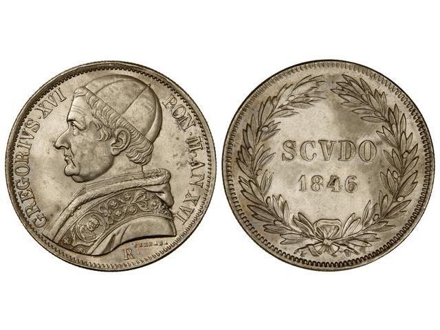 WORLD COINS: ITALIAN STATES - 1 Escudo. 1846-R. GREGORIO XVI. ESTADOS PAPALES. AR. Año XVI. KM-1324. EBC.
